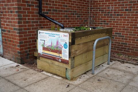 This year’s first rain garden is at Tewkesbury Baptist Church - a pivotal hub for the town, hosting everything from repair cafés to fitness classes. The drainpipe at the front of the building has been diverted into the rain garden – a large wooden planter built from railway sleepers containing 36 pollinator-friendly plants.